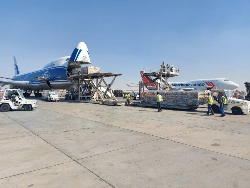 Together with its contracted Egyptian partner, deugro arranged the required repacking at the packing facility and the coordination with the manufacturer as well as with the airport cargo handling agent. To keep the tight timeline, the repacking work was performed around the clock. In addition to deugro’s high quality and safety standards, the carrier’s loadmaster inspected the cargo packing to ensure it met all the requirements for safe stowage and lashing.