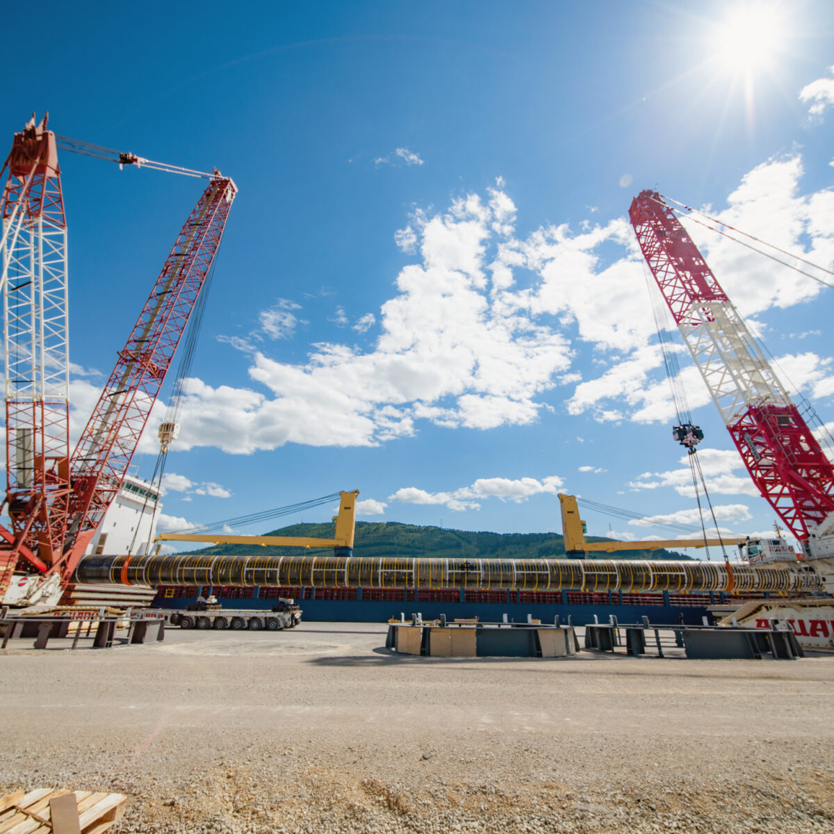 As part of the project, deugro compiled a complex coordination of operations with shore cranes, local agents and the multi-purpose (MPP) vessel MV BBC LIVORNO. dteq, a company of the deugro group, contributed to the success with custom-designed transport saddles and finite element 3D analysis of the cargo prior to operations.