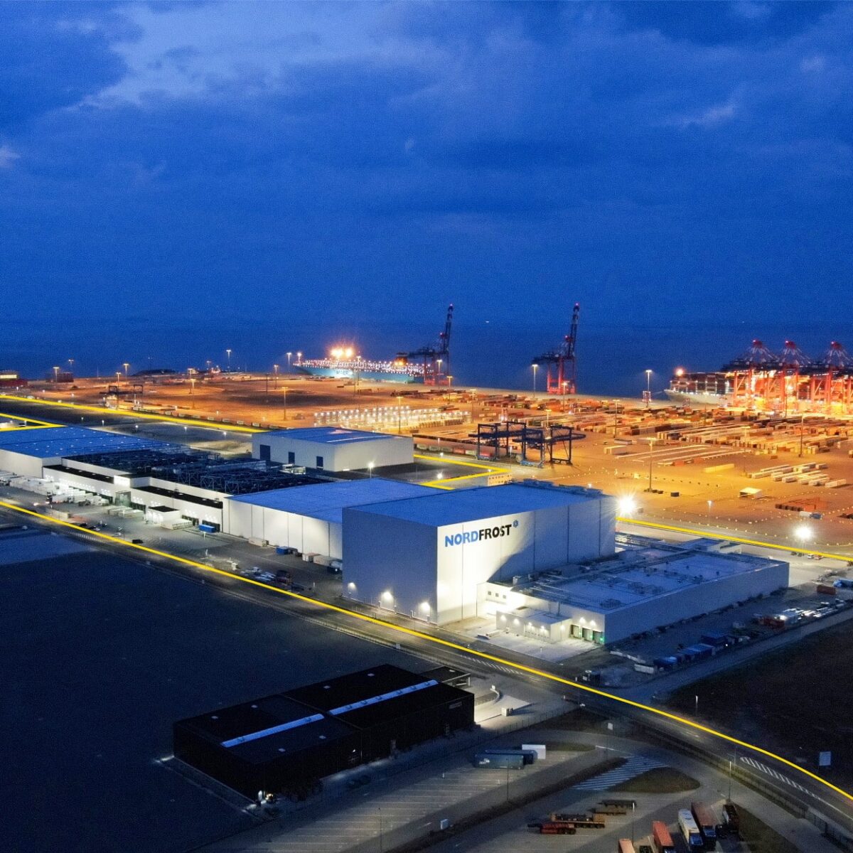 As part of the cooperation, NORDFROST will provide an about 150,000-square-meter supervised and protected logistics area at its two Wilhelmshaven port locations, with a total area of 40 hectares for the joint hub activities, unrestricted access for ocean-going vessels and direct hinterland connections to the German freeway and the European rail network.