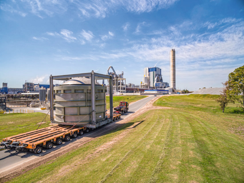 The oversized cargo unloaded at Fray Bentos had to be moved through the existing pulp mill, considering the operations at the active work environment. All items were unloaded and stored at a laydown area first, before being loaded for the 230-kilometer road transportation to the location of the new pulp mill in central Uruguay. The roads needed to be prepared for the massive and oversized cargo: by building at total of 28 bypasses and new high-tension cable line masts, removing or adjusting 1,106 traffic signs and poles as well as 59 overhead obstacles, reinforcing 23 culverts, and much more.