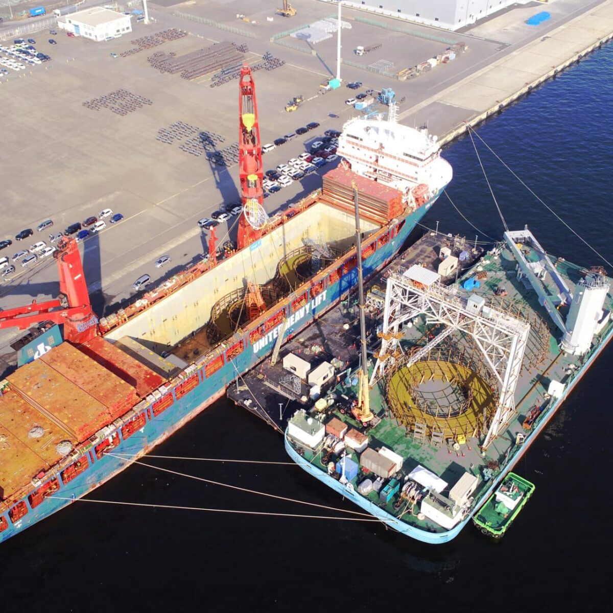 The 140 kilometers of MRC cable were loaded in a 20-day operation directly from a barge to the heavy lift vessel UHL Falcon at the Port of Osaka, Japan. To start the installation of the tanks, the spooling operations, and arrange for a timely departure from the Port of Osaka, the local deugro teams ensured that all requirements from the Maritime Warranty Surveyor (MWS), tasked by the consignee, were met in a timely manner.