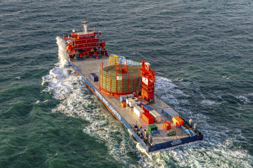 For keeping ongoing cable-laying operations for an HVDC submarine cable electrification project on track, deugro delivered 700 kilometers of MRC, DC400kV and FO cables, totaling 15,500 metric tons, from Japan and Norway to a cable-laying vessel in Abu Dhabi, UAE.