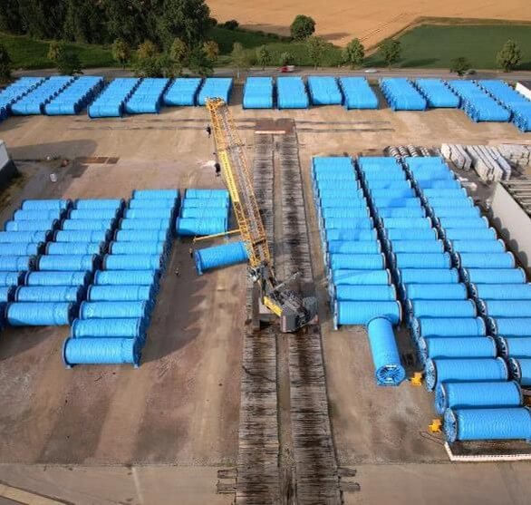 Intermediate storage area for 800+ cable drums with a unit weight of up to 86 tons